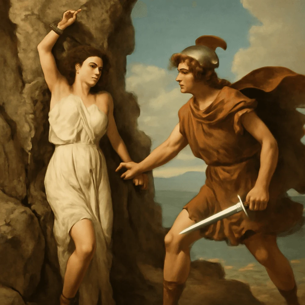 Вот и Персей, обезглавивший ловко змееподобную тварь, устремляет несокрушимый свой меч на подмогу подло закованной в цепь Андромеде.